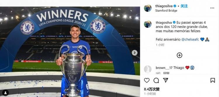 直播吧3月10日讯 蒂亚戈-席尔瓦更新社媒,为切尔西庆祝生日。