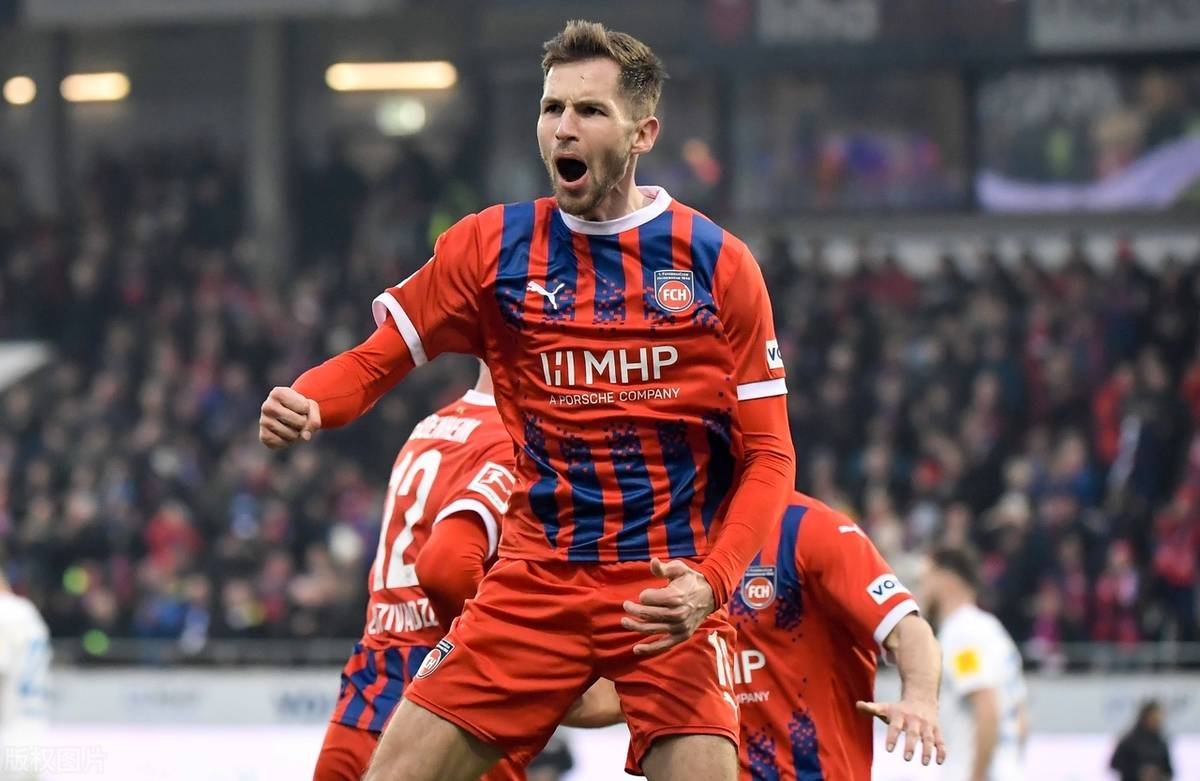 上半场第33分钟,22岁拜仁旧将克雷齐希妙传,派林格先拔头筹帮助海登海姆队取得领先。