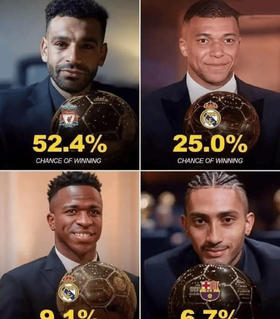例如,若皇马和利物浦都在16强止步,若他们同时赢得联赛冠军,萨拉赫有可能逆袭姆巴佩。但即使皇马未能赢得欧冠,只要进入决赛并且拿下西甲冠军,姆巴佩依然有很大的优势。问题在于,萨拉赫虽然联赛表现出色,但也无法掩盖登贝莱的强劲表现——尤其是在欧冠的关键进球。给萨拉赫颁奖,势必会引发很大争议!然而,萨拉赫的商业价值相对较低,不如给姆巴佩,尤其是考虑到他的全球知名度。