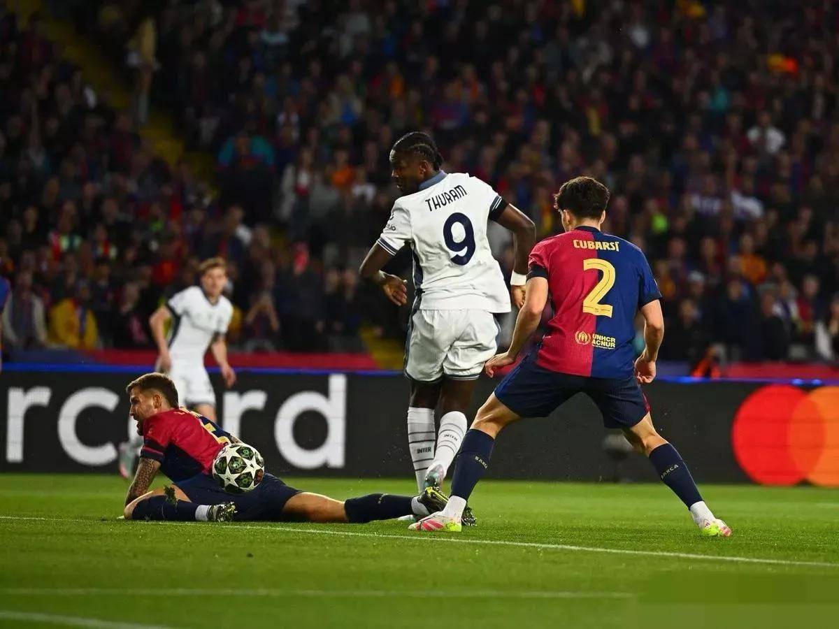 比赛开场仅30秒,国际米兰便制造暴击:比塞克右路传中,图拉姆门前脚后跟弹射近角得手,国米1-0领先。这是欧冠半决赛历史最快进球,打破了2003年客场对阵皇马时的38秒进球纪录。第21分钟,国米扩大优势:姆希塔良右路直塞,邓弗里斯禁区内勾射远角得手,比分改写为2-0,国米用两次反击击穿巴萨防线。