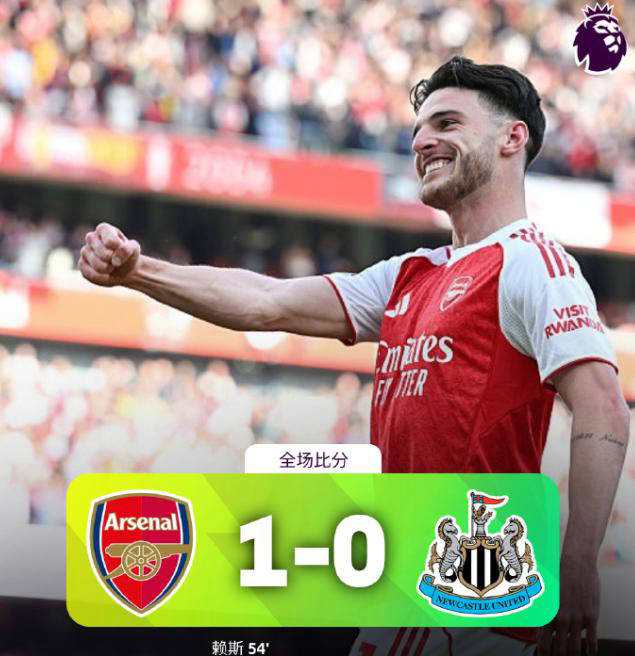 比赛的转折点发生在第54分钟,萨卡在前场积极抢断,将球传给厄德高,后者视野开阔,将球精准送到赖斯脚下。赖斯不犹豫,一脚凌空抽射,皮球如炮弹般飞入网窝,打入了全场唯一的进球,也奠定了胜局。领先后,阿森纳逐步加强控球,试图通过稳定中场、稳固优势。而纽卡斯尔尽管拼尽全力,加大攻势,但始终未能破门。
