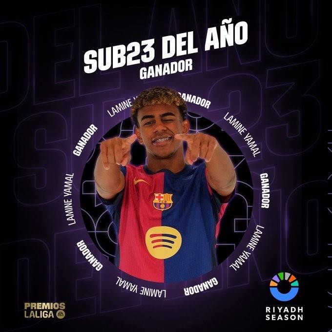 直播吧6月5日讯 西甲官方宣布,17岁的巴萨攻击手亚马尔当选本赛季西甲最佳U23球员。