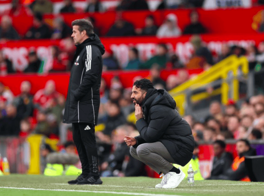 红魔发动左路进攻,达洛特传中,B费跟上扫射,莱诺无能为力,阿莫林在场边狠狠握拳。